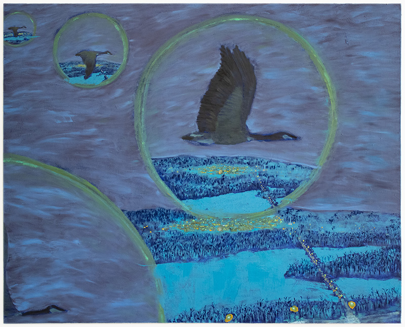 Being A Flock Of Geese, Frozen River. Oil on canvas. 48x60 in. 2024