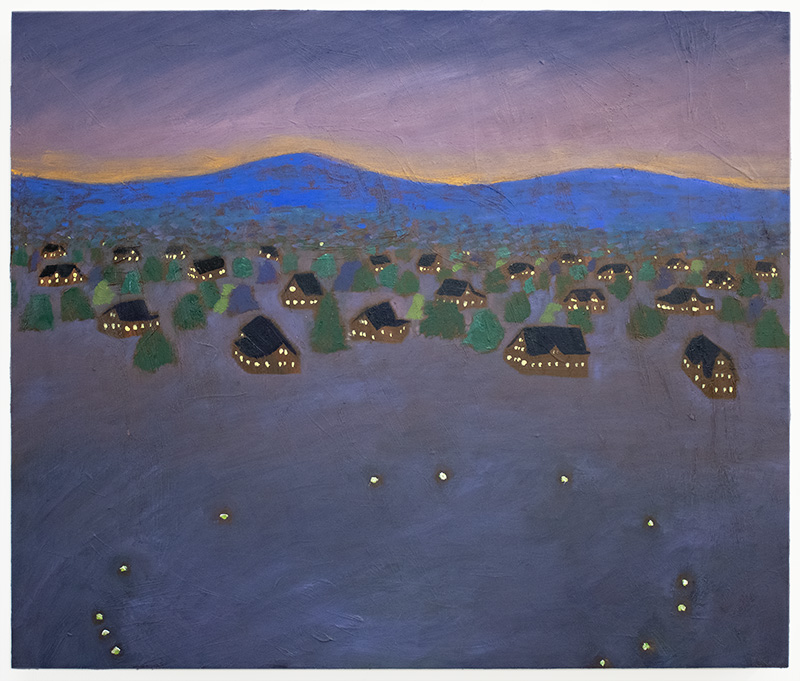Neighborhood And Inner Constellation. Oil and acrylic on panel. 20x24 in. 2024