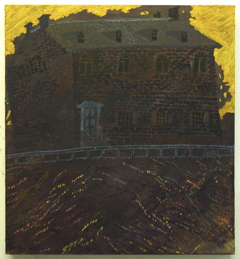Phoenix Club House, Harvard University (Gold). Oil and Acrylic on Canvas. 25x23 in. 2020