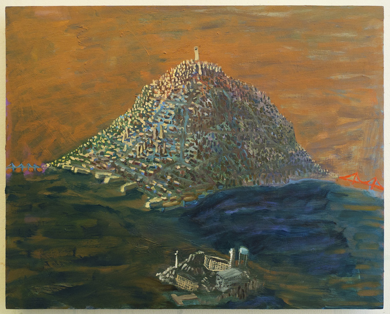 Alcatraz and San Francisco. Oil and Acrylic on Panel. 16x20 in. 2020