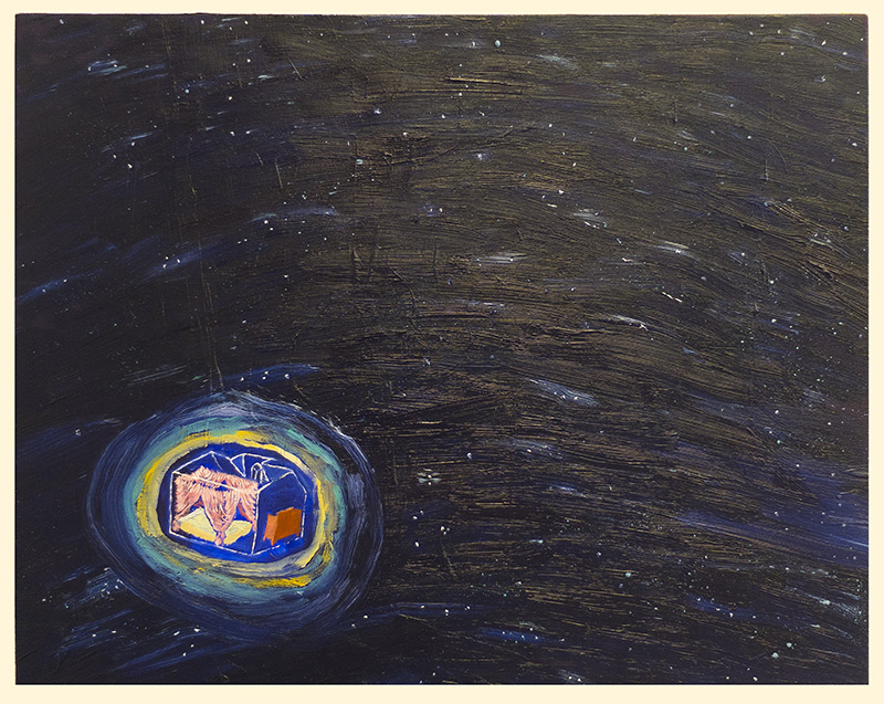 Space Bedroom. Oil and Acrylic on Panel. 12.5x14.5 in. 2020