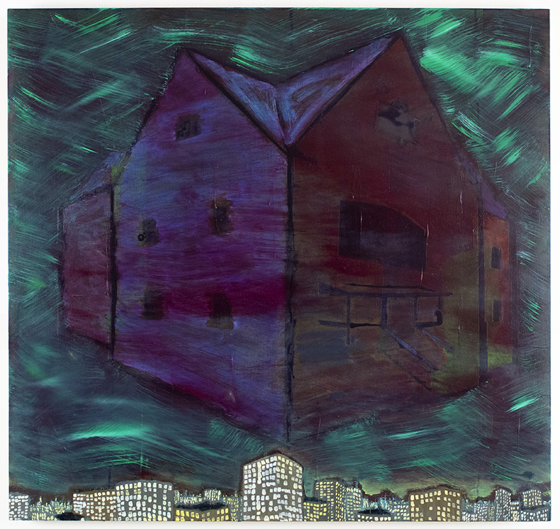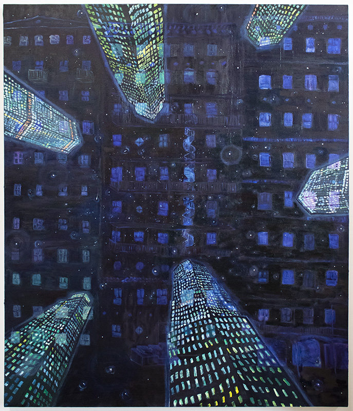 Cosmic Bedroom And City. Oil and Acrylic on Panel. 36x30 in. 2022