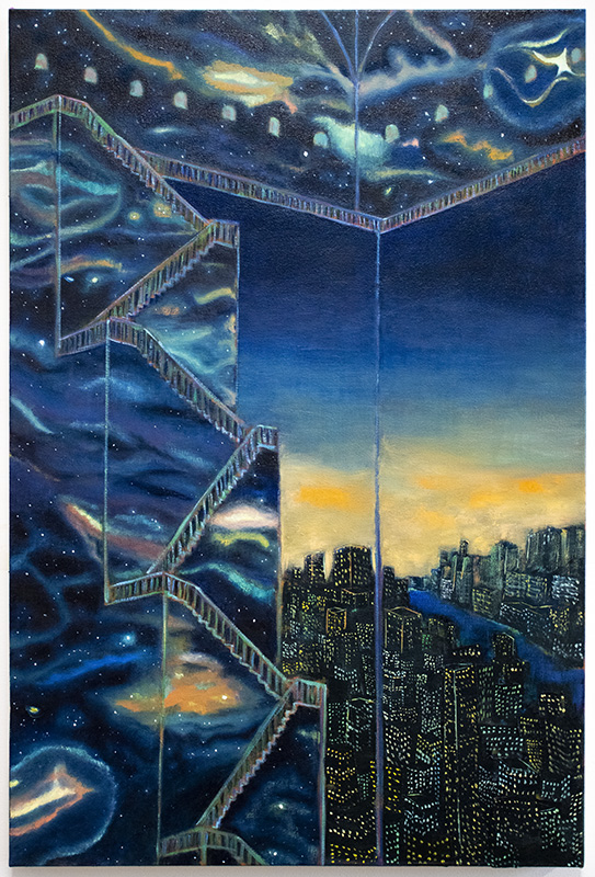 Cosmic Stair City. Oil and Acrylic on Canvas. 36x24 in. 2022