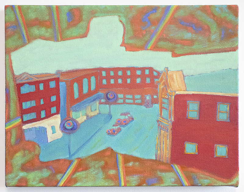 Neighborhood Through Portal. Oil on Panel. 14x14 in. 2022