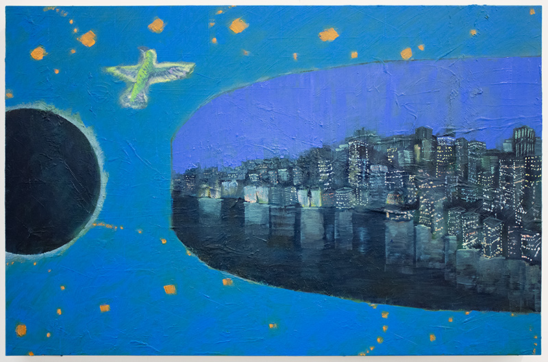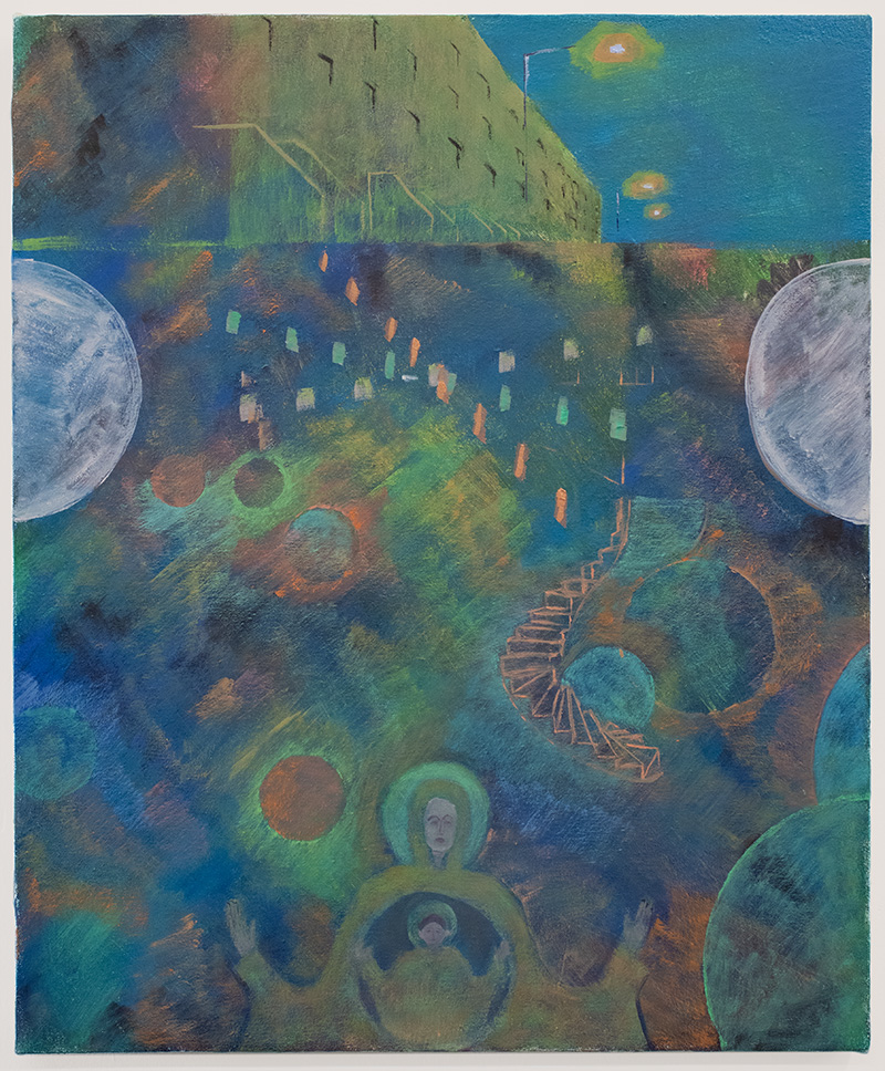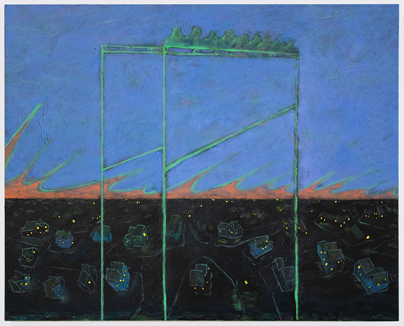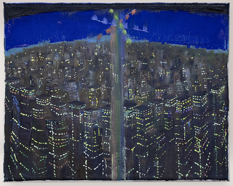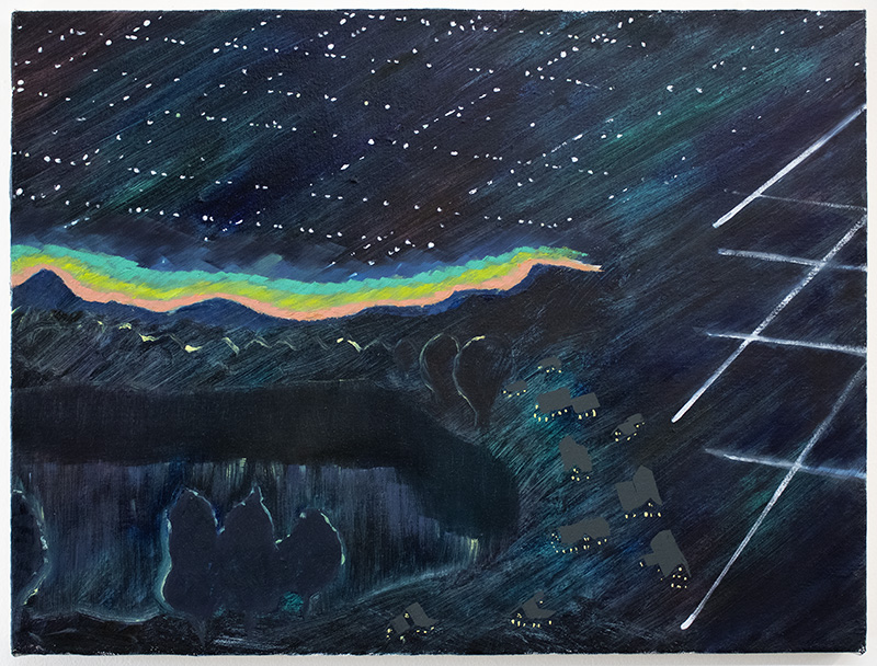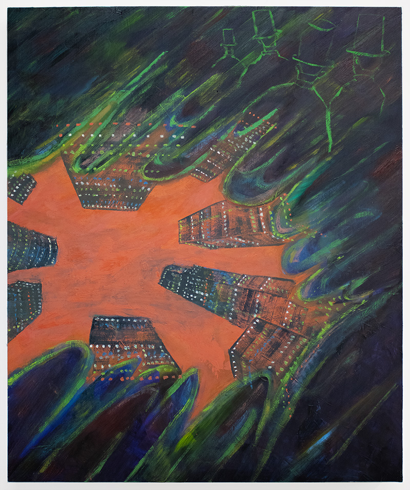 Neighborhood And Inner Constellation. Oil and acrylic on panel. 20x24 in. 2024