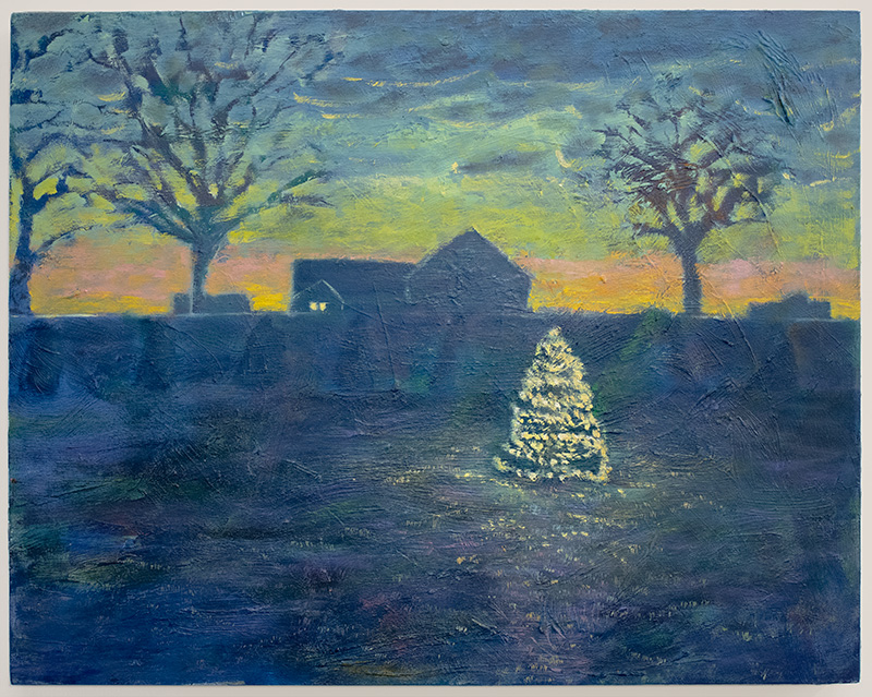 Lit Tree. Oil and acrylic on panel. 20x16 in. 2024