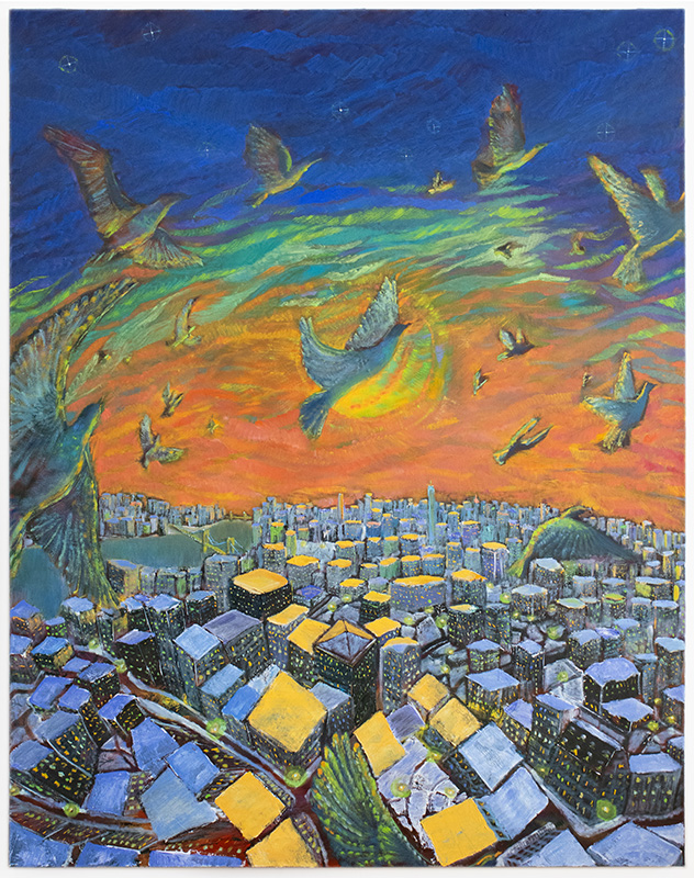 Pigeon City, Winter Sunset. Oil on canvas. 60x48 in. 2024
